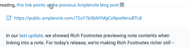 This improvement marks a massive step forward this for those who publish their networked notes via Amplenote. Being able to share swaths of notes to collaborators while maintaining your backlink structure and transcluded previews will save substantial time for those who use Amplenote as their blogging or collaboration tool. Nobody is going to mistake us for Substack quite yet, but we will continue to drive Amplenote to be a capable Wordpress replacement for those who want a lightning-fast writing platform with Rich Footnotes that's portable and Just Works.