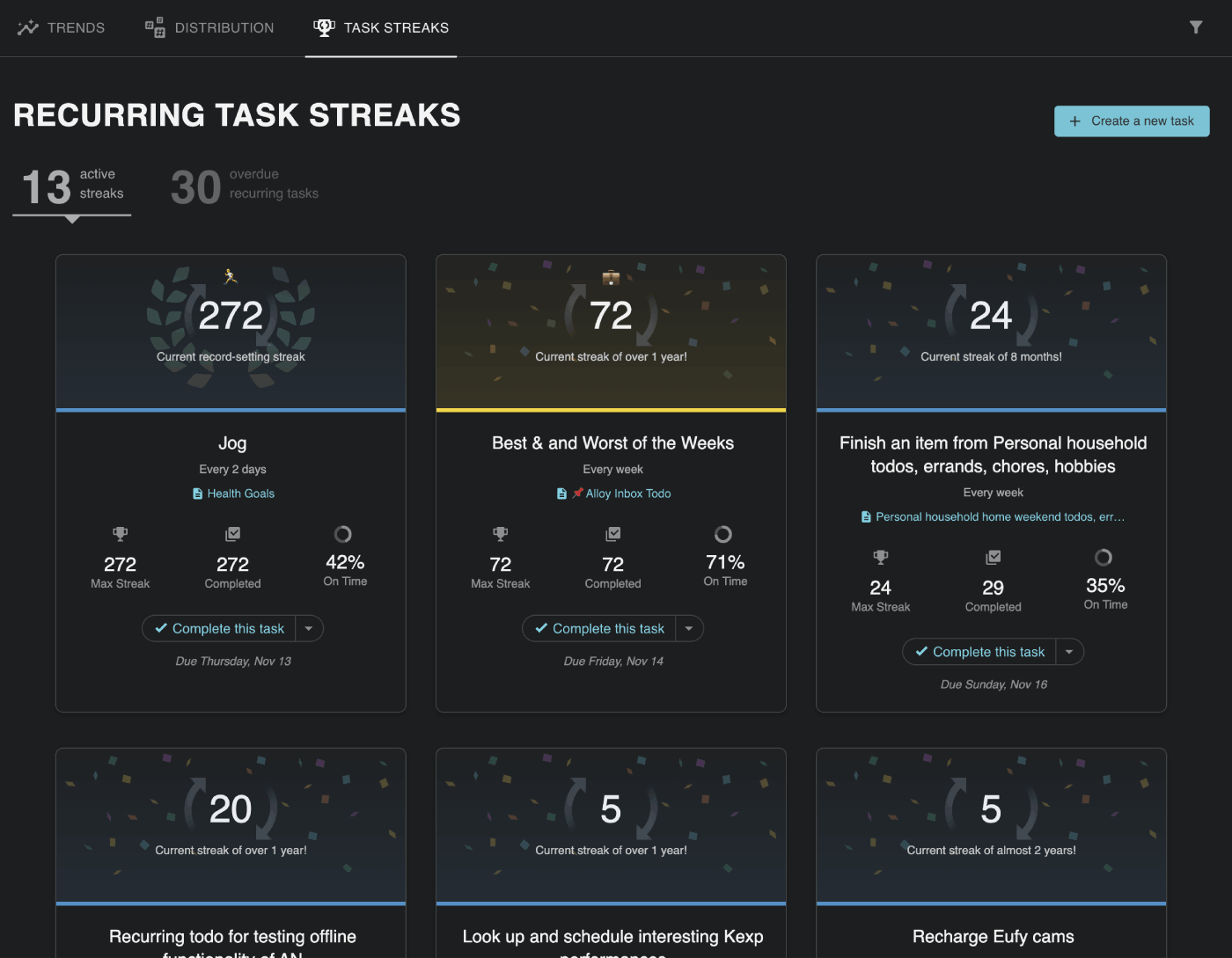 Which task streaks are ongoing? Which new habits do you want to build?