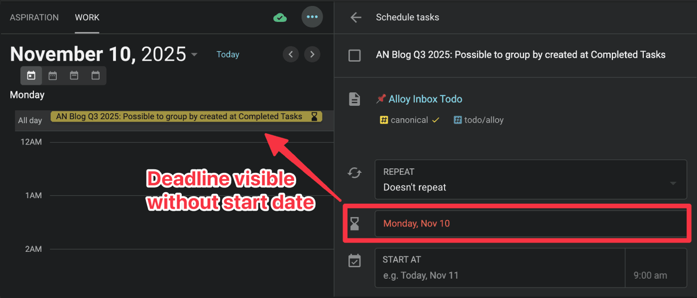 And for tasks with deadlines, they are now clearly called out on your calendar, even if they never had a "Start Date" chosen, making sure nothing critical slips through the cracks: