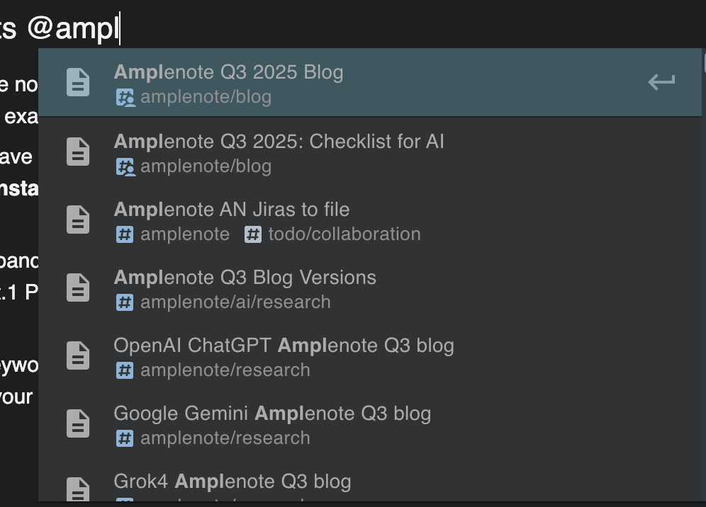 No More "Guess-and-Check" Linking: The note link menu (opened by using [[ or @) now shows 20+ matches instead of just 5, with scrolling. Finding the exact note (or section heading in a note) you need is faster than ever.
