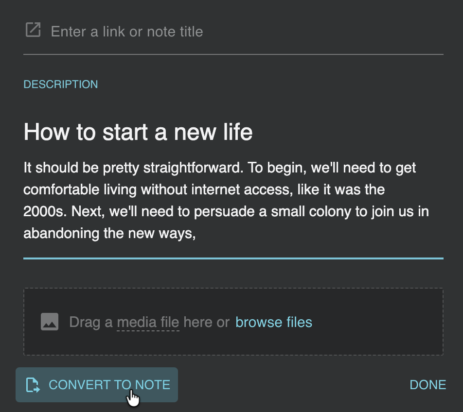 Promote "Rich Footnotes" to Notes: Ever have a Rich Footnote that... got a little too rich? When a footnote has more than just a URL, you get a new button to instantly convert that footnote's content into its own standalone note, leaving a clean link behind. 🧹