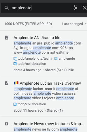 For iOS users, you can simply swipe down from your home screen and start typing to search for notes inside your Amplenote notebook. Results will be matched against the notes' titles.