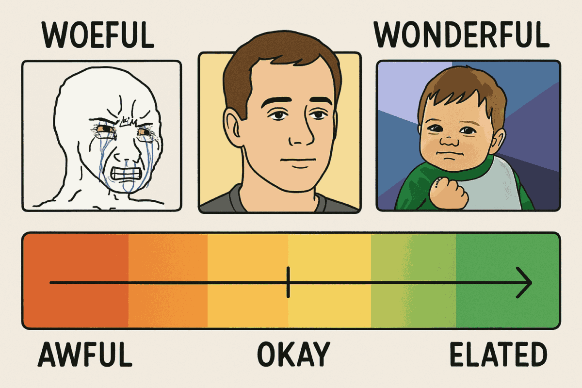If they completed 3 mood ratings of, -2, -1, +2, that averages to -0.3 points to apply to each task completed on that day